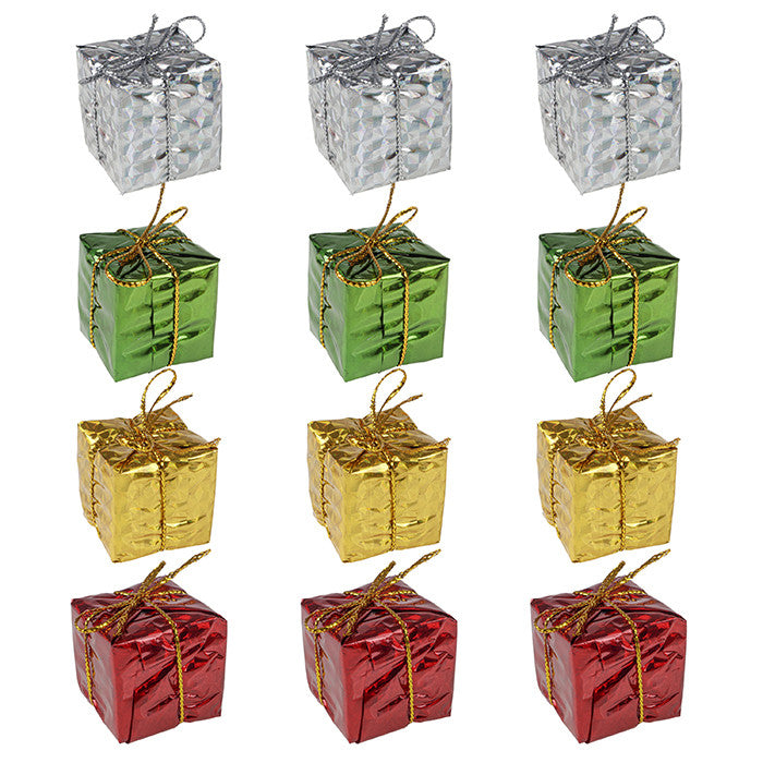 Dimensões Perfeitas: Com 2,3 cm x 2,3 cm, essas mini caixinhas são ideais para adicionar um toque festivo sem sobrecarregar sua árvore.