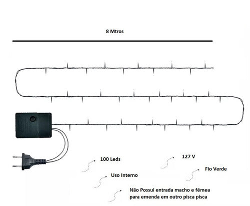 1 Pisca Pisca 8 funções 100 Leds Branco com 8 Metros 127 V