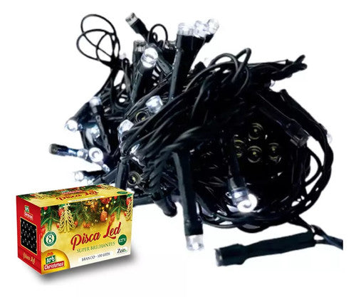 Ilumine seu Natal com Brilho e Magia! Pisca-Pisca LED com 100 Leds, 8 Metros - Luz Branca - 127V