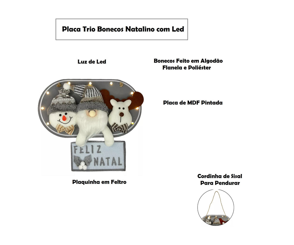 Placa Trio Bonecos Natalino com LED!