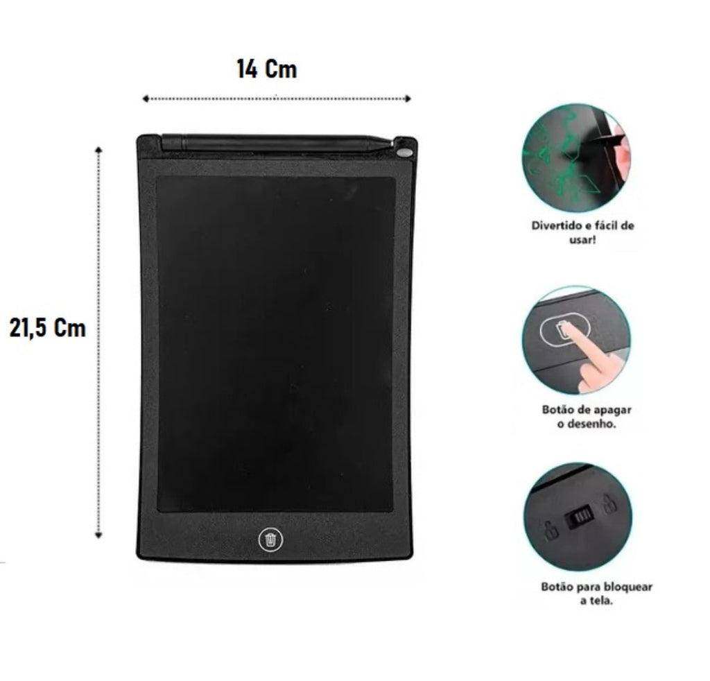 A Lousa Mágica LCD Digital é a escolha ideal para estimular a criatividade e o aprendizado do seu filho de forma prática e divertida. Adquira já e transforme a hora do desenho em uma experiência mágica e inesquecível!
