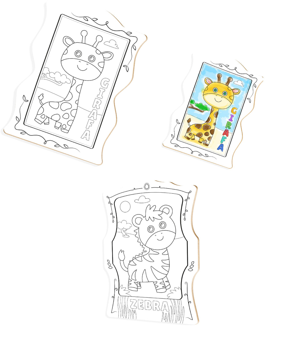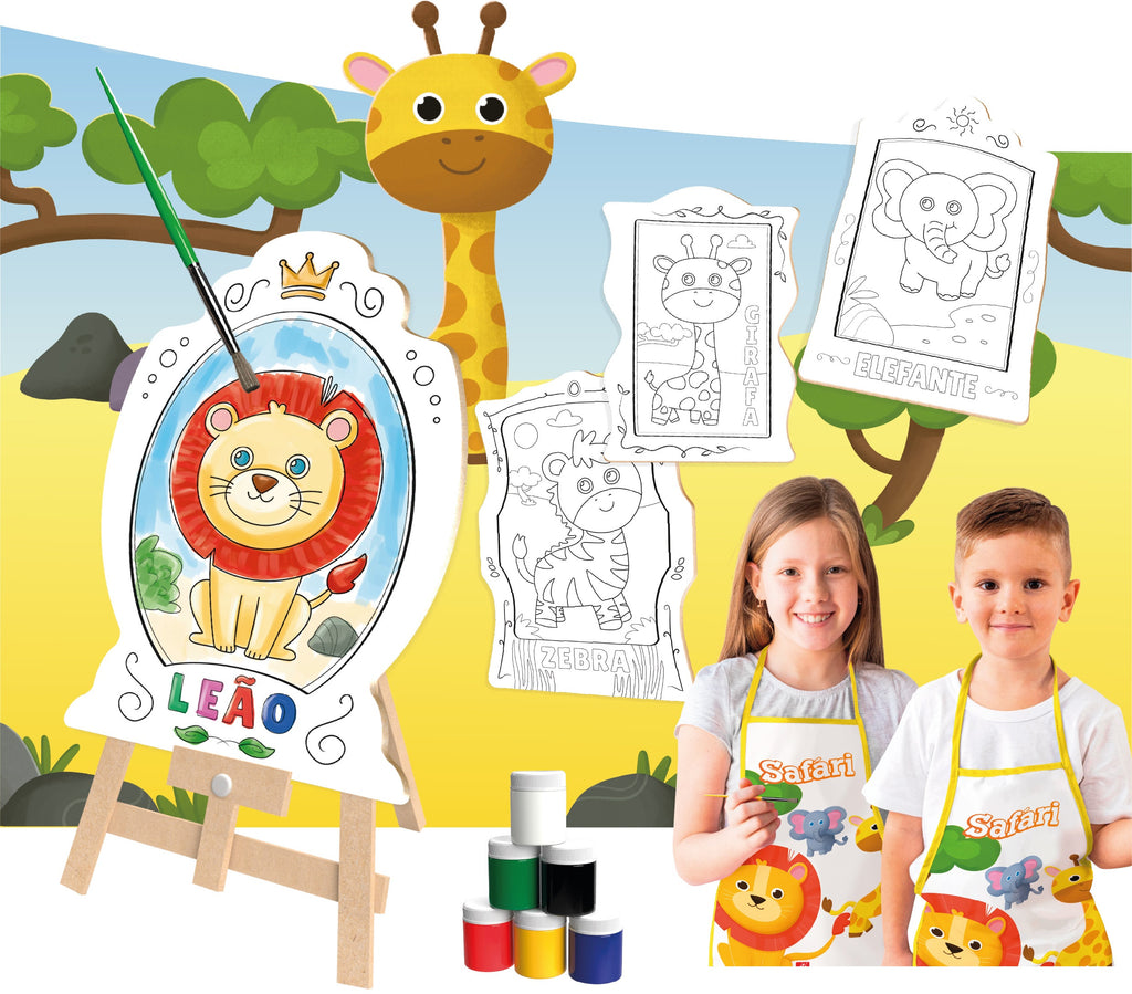 Com o Super Kit Pintura Safari, feito em madeira, os pequenos artistas vão embarcar numa verdadeira aventura no mundo das cores!