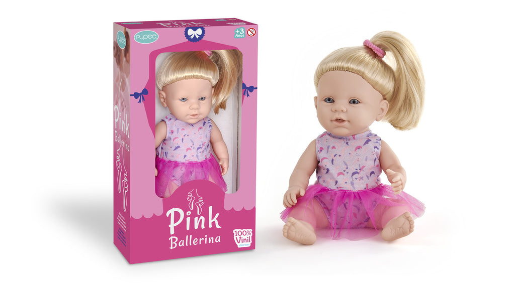 Boneca Bailarina Pink Vinil 31 Cm Rosa